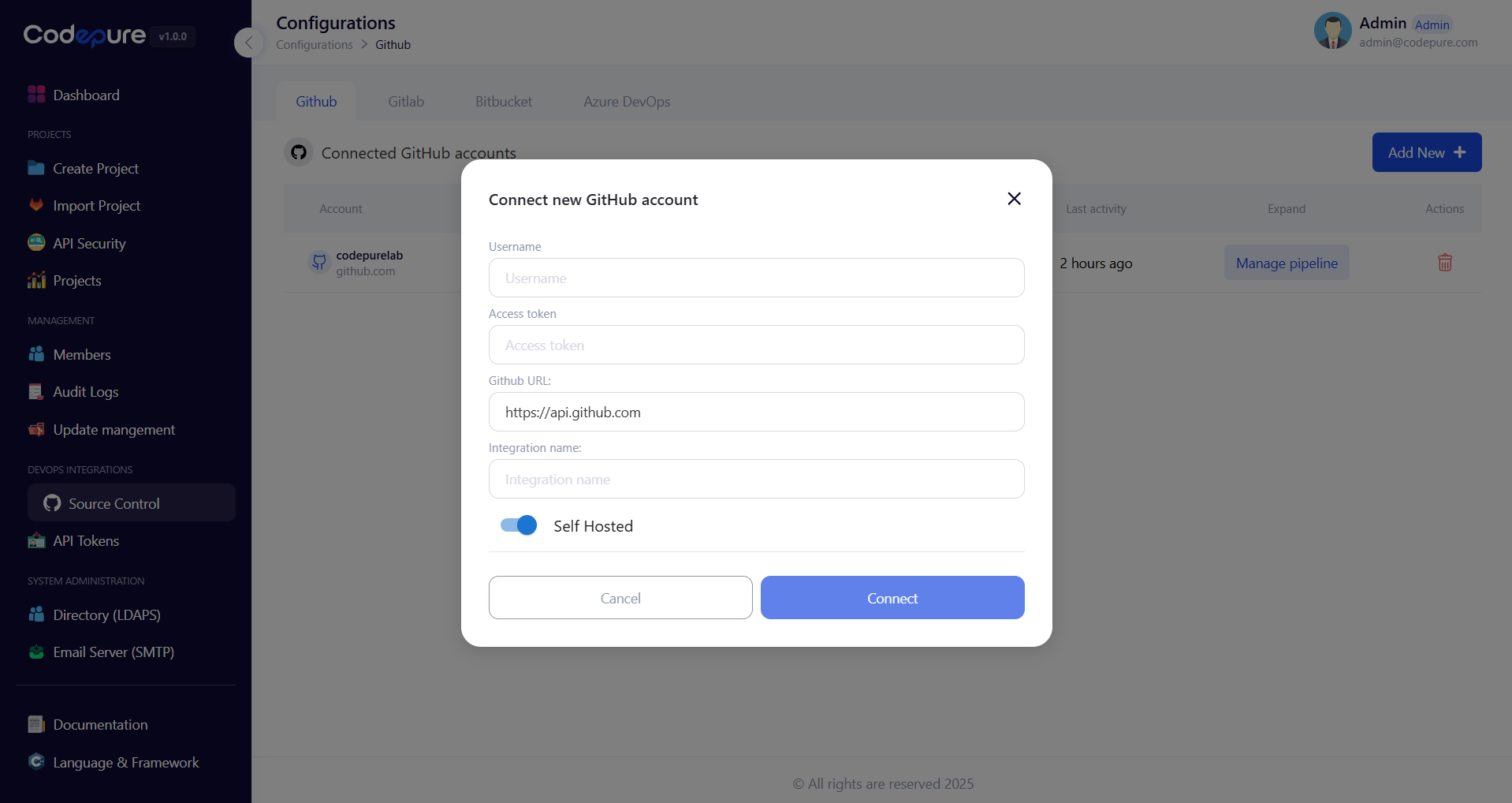 | Is Self Hosted | Toggle this on if you’re using GitHub Enterprise (self-hosted GitHub instance). |