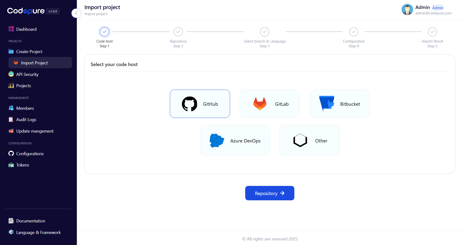 Now that your GitHub integration is complete, you can import your repositories.- Go to Projects → Import Project.